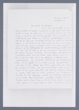 U hebt met zeldzame scherpzinnigheid het ‘rhythme’ van mijn ontwikkeling nagevoeld en in Uw text vast weten te houden. Het is vrijwel zonder uitzondering juist, wat er staat. Ik kan dat vooral verifieeren door de bezwaren, die U hier en daar oppert (de domheden tegen mijn domheden); het zijn de ‘lekken’, waarop ik zelf ook gestuit ben. Zoo is b.v. Uw passage over de gelijkheid een van de gewichtigste amendementen, die men op dit punt kan indienen. Inderdaad, hier begint een nieuw hoofdstuk, en het is zeer wel mogelijk, dat niet ik, maar U het zult schrijven. (Iedereen heeft grenzen, en ik weet niet, wanneer ik mijn grens bereikt heb,). Wat U zegt over Don Quichote is uitstekend, een ‘lek’ van het boek; een voortreffelijke aanvulling is Uw opmerking over het specialisme. Ik zou door kunnen gaan, maar ik wil mij beperken tot Uw voorkeur voor den politicus zonder partij boven den ‘Christus’, die ik, nu al, deel, of liever: datgene in ‘Van O. en N. Chr.’, wat voor mij essentieele waarde heeft, is het politicus-zonder-partij-element, niet de historische documentatie via Augustinus of Marx, niet de ‘bewijsbaarheid’ van mijn stellingen over het socialisme of fascisme. En het zijn - dat merk ik uit de Nederlandsche reacties - juist deze secundaire dingen, die ‘den’ lezer een zeker respect inboezemen (angst voor de feiten). Zoo schreef mij Huizinga, (dien ik als achterneef het boek zond) met een schouderklopje van den promotor aan den promovendus, ‘dat Uw werk op groote en soliede kennis berust, een product van zeer ernstigen, diepen en scherpen denkarbeid is’. Denkarbeid: Sic! Maar hij bekent ook zijn ‘onvermogen, U voortdurend te volgen’, en de ‘christelijke these’... ‘kan ik nu toch waarlijk niet au sérieux nemen’. Dat dit ook voor hem niet noodig is, schijnt hem te ontgaan. 't Is echter allemaal goed bedoeld. Met goede bedoelingen moet ik meestal genoegen nemen.