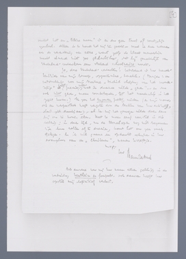 Ja, deze Vaderland-redacteur! Uitstekend is Uw karakteristiek van mijn beroep, opportunisme, karakter. (Terzijde: de uitdrukking voor mijn brochure ‘tactisch vliegtuig van het moederschip’ geeft precies weer, wat ik daarmee wilde ‘geven’... en dus ook niet geven, meer voorbehouden, tot het moederschip in het zicht kwam.) Ik zou het bijzonder prettig vinden (en mijn vrouw, die een wespensteek heeft vergeten door de lectuur van Uw artikel, sluit zich daarbij aan), als U mij het genoegen zou willen doen eens bij ons te komen eten. Doet U maar eenig voorstel in die richting; in dezen tijd, nu de toneelapen nog niet begonnen zijn hun rollen af te draaien, komt het ons zeer vaak gelegen. En ik wil gaarne een opdracht schrijven in Uw exemplaar van de ‘Christenen’, namens Uzzeltje.