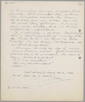 Uitstekend, dat je komt. Alleen verdomd jammer, dat het niet langer kan duren. En bovendien is het mij niet vergund om den 9en met je mee te gaan naar ons geliefd oord. Mijn ‘chère madame mère’ is n.l. den 12en September jarig. Hetwelk ik moet assisteeren.