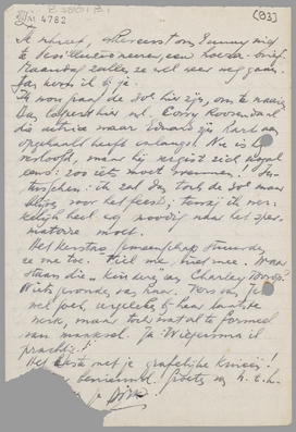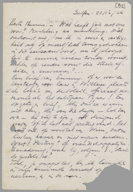Ik wou graag de 30e hier zijn, om te naaien. Dan logeert hier n.l. Corry Roosendaal, die actrice waar Eduard zijn hart aan opgehaald heeft onlangs. Nu is hij verloofd, maar hij vergist zich nog al eens: zoo iets moet wennen! Intusschen: ik zal dan toch de 30e maar blijven voor het feest; tenzij ik werkelijk heel erg noodig naar het spermatoire moet.