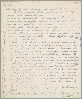 Het is, als ik alles goed bij mezelf onderzoek, noodig om te kiezen: erop of eronder. Hoe het gaan zal, mag de hemel weten; zoomin als jij weet, wat er worden mag van jouw, onmeedoogend door het lot geteisterd, leven. Er zijn wonderlijk sombere dingen; het wonderlijke is dat het zoo concreet aan den lijve gevoeld wordt, wat op het eerste gezicht alleen maar een soort romantisch-anecdotische fantasterij schijnt: het onmogelijke en het onherstelbare. En dat in dit eene korte bestaan. Bij wijlen kan dit mij zeer hard en helder bewust worden; het kost ongelooflijke inspanning dit wreed bewustzijn zegevierend te overwinnen. Maar het moet. Jij moet het, en ik moet het. -