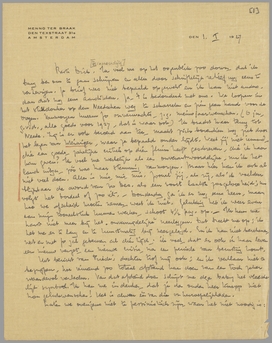 Het prospectus van de V.Bl. is heel goed. Alles dadelijk beter, meer af dan bij van Looy. Ik weet niet, of ik nog iets voor no. 2 leveren kan, zal mijn best doen. Anders wel gauw iets uit Berlijn. - We spreken dus voorlopig af, dat ik Donderdagavond 13 in Zutfen kom. Ik moet dan Vrijdagmiddag door naar Eibergen en ga Zaterdagmorgen naar Berlijn. Donderdagavond kunnen we dan nog ‘de laatste dingen’ belullen.