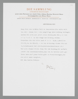 sehr vielen Dank. Wenn im Querido-Verlag der Wunsch der Vater des Gedankes war, als man Ihren Namen auf den Prospekt setzte - der also mehr ein Wunschzettel des Verlages, als eine solide Vorankündigung wurde - , so ist es reizend von Ihnen, uns diesen Wunsch jetzt zu erfüllen. Ich habe Ihr ‘Nietzsche contra Freud’ sofort und mit einer wirklichen Gespanntheit gelesen. Ich hätte Ihnen noch umgehender geschrieben wenn ich nicht unterwegs gewesen wäre; aber ich musste ja die Angelegenheit der deutschen Emigration vor dem P.E.N.-Club in Barcelona vertreten. Seit heute morgen bin ich zurück von diesem anstrengenden Ausflug, und ich beeile mich, Ihnen für eine Lektüre zu danken, die mir die Zeit zwischen Narbonne und Port Bou kurz werden liess - was etwas bedeutet.