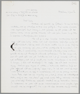 Van Vestdijk een brief uit Brussel. Hij schreef, dat jij graag een ‘flinke partij verzen’ van hem in het Juli-nummer wilde hebben. Ik ook; maar er zijn nu al 84 pagina's! Dus er zal al verschrikkelijk geprutst moeten worden, om een behoorlijk nummer te fabriceeren! In Augustus zal er waarschijnlijk meer plaats zijn; maar misschien komt er juist ruimte voor verzen open.
