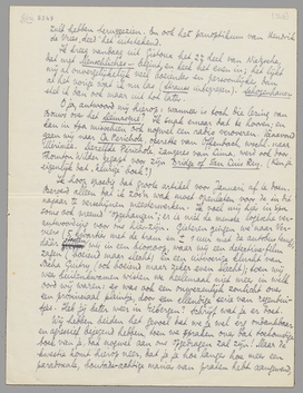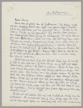 Gelijk hiermee zend ik je het domste boek van de wereld. Je hebt er géén idee van! ik zweer het je; en je hebt nog nooit zooiets doms gelezen! Ik legde er gisteren 22 frs. 50 voor neer, maar schreef vanmorgen dan ook het panopticum-stukje dat hierbij gaat. Het verhaal van den jongen auteur die het voorbeeld van den ouderen auteur volgde en toen zooveel dikke boeken schreef, heb ik ook voor het panoptikum klaargemaakt en aan Bouws gestuurd. Stuur jij hem dit door, en schrijf mij hoe je het vindt; maar niet dan na ook het boek te hebben ingekeken. Vind je het verder ook geen fraaie tegenzang voor jouw Mussolini-stuk?