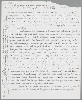 De aanteekeningen over Salverda en Querido zijn uitstekend. Je schrijft toch minstens tien maal beter fransch dan Salverda! Het aardige is, dat je er heelemaal in zit, dat je blijkbaar zonder moeite jezelf in fransche zinnen kunt draaien. Ik benijd je dat voorrecht.- De dialoog heb ik nog niet kunnen lezen, want ik zit vol met allerlei correctiewerk voor het Kerstrapport, en ik wil er goed in studeeren. Gelukkig heb ik onder de bedrijven het hoofdstuk over de intelligentie kunnen voltooien. Ik ben benieuwd, wat je er van zeggen zult. Nu: Nietzsche contra Freud. Over de termen ‘gezondheid’ en ‘ziekte’. Begint met een vergelijking tusschen Valéry en Lawrence! (De één intelligenter dan de ander, en toch minder sympathiek: hoe kan dat?) Schrijf jij dus gerust voor Forum over de brieven! Ik verwacht er veel van, het lijkt me precies iets voor jou!
