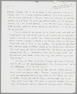 Hartelijk dank voor je vele zendingen, niet het minst voor het gedicht van Orléans, dat me werkelijk getroffen heeft (misschien het meest door de orthographie?). Die Boucher schijnt het royaal aan te leggen! En vandaag kreeg ik eindelijk je Smalle Mensch. Ik heb het geboeid uitgelezen. En toch: ik heb meer direct contact met je stuk over Huxley! Ik kan me met de beste wil van de wereld die collectieve idealen zelfs niet als vijanden voorstellen! Of beter: ik ben zoozeer overtuigd van de oer-vijandschap tusschen dit soort ideeën en de mijne, dat ik me er niet zoo benard door zou voelen als jij. Ik geloof nog niet zoo hard in het collectivisme voor West-Europa, anders dan in den kuddevorm, waarin we het nu hebben; een vorm, die ons nog juist vrijheid genoeg laat om te polemiseeren. De indruk, dat het collectivisme in zijn stompsten vorm een typisch nationaal-russisch verschijnsel is, kan ik niet kwijt. En dat: ‘wij tellen niet mee’ is iets, dat ook geldt in deze maatschappij! Wij, d.w.z. wij als denkers, dichters etc. tellen nooit mee, wij tellen alleen, als schoolmeesters en letterkundigen. Zoo zal het in de Sovjet-Unie ook wel zijn. - Bij fragmenten pakt je stuk me ineens hevig, dan komen er weer stukken, die ik alleen met intellectueele belangstelling lees. Tegen het einde wordt het bijzonder goed en direct-persoonlijk. Maar ik voor mij heb het idee, dat je de ‘gevaren’ (of zelfs maar de mogelijkheid van bestaan) van een werkelijk consequent-collectivistische maatschappij in W. Europa overschat. Of wij leven er al in (als leeraren - kuddedieren etc.) òf wij krijgen het hoogstens relatief iets beroerder. Eigenlijk voel ik wel een beetje op de simplistische manier van v. Schendel, d.w.z. ik aanvaard ‘collectieve problemen’ in geen enkel opzicht; ze zijn voor mij een contradictio in terminis. Werden wij gedwongen, er collectieve problemen op na te houden, dan zou ik geen problemen (althans geen theoretische. De maag heeft andere problemen.) hebben. En het tweegesprek met dien ‘hij’, dien je laat optreden, is dan ook voor mij geen dialoog van gelijkwaardigen, zooals die tusschen Diderot en neef Rameau. (ik las die gisteren nog eens over).