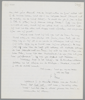 Gisteren kwam Gans onverwacht hier aanzetten met zijn nu geheel voltooide studie, 23 pag. dicht beschreven, lijkt me bij oppervlakkig inzien heel goed. Nu moet het dus zoo geregeld worden, dat jouw blocnote over de Sowjet auteurs en Gans' artikel niet in één nummer komen, want dat is van het goede teveel (tenminste wat de verdeeling van de ruimte betreft). Ik dacht dus jou in Jan. en Gans in Febr. te zetten; kun je daarmee rekening houden? Later kan Gans m.i. ook al niet, omdat hij een zekere mate van actualiteit heeft. Hij had het stuk alleen wat vlugger moeten afwerken, dat was gemakkelijker voor mij geweest.