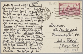 Ik moet altijd heelemaal bij toeval zien wat er in het Vaderland gebeurt. Zou je zoo goed willen zijn me de krant (het Vad.) van 29 Juni te zenden, waarin het protest-Marsman staat; en graag ook het nr. van die nieuwe Kroniek v. Hedend. Kunst en Kultuur (door jou besproken). Wil je daarbij doen: De Groote Dichters van Gorter, en de gevr. stukken over het congres niet vergeten? Gorter en Kroniek krijg je terug, als je dat wenscht. Ik reken op de toezending en dank bij voorbaat.
