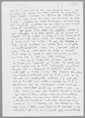 Wat mij vooral treft in je beschrijving van het geval D.D., is weer de dilettantische bestrijding van zoo'n man door het gouvernement. Zoo moet het wilhelminische Duitschland Liebknecht en het Tsaristische Rusland zijn ‘intellectueelen’ bestreden hebben! Een concentratiekamp, of een veemmoord zou veel eenvoudiger zijn dan deze omslachtige procedure. De democratie (en zeker de koloniale) is een wonderlijke paradox. Hoeveel vooroordeelen zijn er niet verdiskonteerd in deze ‘rechten van den mensch en van den burger’, die dan toch maar beletten, dat iemand als D.D. onmiddellijk wordt gefusilleerd, zooals in Duitschland, of eerst latrines mag schoonmaken. Alles welbeschouwd leeft hij nog in een paradijs. In Duitschland is zoojuist een officieel verbod voor schilders afgekomen om families te schilderen met minder dan 4 kinderen, aangezien dat niet in overeenstemming zou zijn met de waardigheid van het kinderenfokkende Rijk. Dit is geen mop!