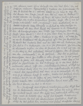 Een tijdje geleden las ik de brieven uit Batavia van Huet aan Potgieter (deel 2 en 3 van de 3 dln.); las jij ze ooit? Als Huet het over de politiek heeft, lult hij alle ‘conservatieven’ na; maar zijn opmerkingen over de samenleving zijn nu nog absoluut van kracht. Ik heb zelfs zoo'n gevoel dat het vroeger hier echter was, stommer, maar àls er behoefte was aan ‘wat beters’, dan ook grappiger, intenser. Tegenwoordig is Batavia een provinciestad die aan de kritiek toe is: iedereen haalt nu z'n neus op voor bv. het dansen van Darja (vindt men dàt nu mooi in Holland??) omdat iedereen in Berlijn, of Parijs, of ergens anders gedurende verloftijd, een andere beroemdheid genoten heeft. Men is meer ‘algemeen ontwikkeld’, méér ‘europeesch’, méér snobistisch, en in laatste instantie even klungelig en belust op schandaaltjes en provinciaal als toen Huet Faust zag opvoeren in de Schouwburg hier. De krontjongtroepen van vroeger zijn vervangen door echte bands (jazz-bands!) - het is er geen haar beter op geworden, behalve voor de indo-snobs. Maar... Batavia is een stad, - al vroeg Jan me na de briefkaart v/h Landsarchief of 't hier zoo landelijk was. Hij dacht dat Batavia toch wel een stad was als Antwerpen. Goeie God, het is 5× Antwerpen, en 10× zoo gevarieerd. Dat komt door de chineesche wijken en door de Javanen die er ook nog zijn. Als er één ding is, dat inderdaad vooruit is gegaan, dan de situatie van den ‘inheemsche’, en de politiek. Niet dat ze politiek vooruitgaan, want Jan Lubbes is slim genoeg om ze net zooveel ruimte te geven als dienstig wordt geacht; maar door al het gelul en gepolitieker en het onderwijs is er een soort betere inheemsche stand, zelfs een ‘intellectueelen’-stand, al blijft het een verdomd lastig ding om met deze intellectueelen te praten, - want, hoe sympathiek ook soms, er is er nauwelijks één bij wien je je illuzies hoeft te maken, zoodra het politieke terrein verlaten wordt (en de Islam of zoo), zoodra je werkelijk tot een gratis wisselen van intellectueeligheden komt, moet alles van één kant komen, en dat is de onze.