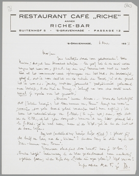 Zeer hartelijk dank voor gelukwenschen! Ook Truida; Ant zal haar binnenkort schrijven. Ik zelf heb in de eerste weken nergens tijd meer voor, zit n.l. nog aan mijn leeraarsvak vast en moet toch al het voornaamste werk opknappen van Het Vad. De bedoeling is, geloof ik, dat ik meer deel heb aan de rubriek dan Borel; in ieder geval heb ik voor a.s. Zondag vast een ‘forumsche’ poëziekroniek gelanceerd over Vestdijk, H. de Vries en Buning. Schrijf me voor deze eerste maal vooral je opinie over het gewrocht!