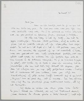 Het stuk over Eddy is heel erg matig, om niet te zeggen onbelangrijk. Bovendien slecht geschreven, alsof de auteur de zinnen met den grootsten weerzin uit zijn schoenzolen had opgediept. En wat m.i. het ergste is: het is niet geschreven voor ‘ons’, d.w.z. voor menschen, die ingesteld zijn op het essentieele in Eddy, maar voor god weet wat voor half-intellectueel publiek, dat voorgelicht moet worden en ontdaan van zijn protesten tegen zulk een raar nummer in de litteraire menagerie. Om je de waarheid te zeggen, ik geloof, dat Victor van de kook is door zijn aanraking met de journalistiek, die hem niet ligt. Hij behoort tot degenen, die door het schrijven voor jan rap zelf geïnfecteerd worden. Laat hij toch in vredesnaam iets gaan probeeren, waar geen schijn van krantenschrijverij of zelfs andere half- productie bij te pas komt! ‘Virginia’ was een goed ding, dit is knudde. Lees hem dit maar voor; hij kan nog gemakkelijk genoeg rechtsomkeert maken, als hij wil tenminste.