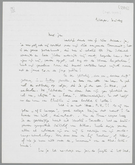 Wat is er met Henr. R.H.?? Is zij van plan ‘af te knappen’, zooals collega Derjeu[?] dat noemt? Ik hoorde van niets, dienomtrent. - Van de Forum-negers kreeg ik een geestdriftige kaart uit Venetië - Torcello. Wat een buitengewoon sympathiek initiatief van Arthur. Zulke dingen zouden alleen al voldoende zijn om mij te overtuigen van zijn eersterangs-menschschap. Kom daar eens om bij Boutens, of Kloos, of wie je maar wilt onder de ‘kanonnen’ van de Ned. letterkunde!