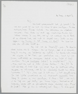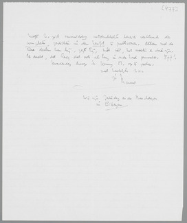 Nog iets over de Slauerhoff-zaak. Ik begin er steeds minder van te snappen. Na het briefje, dat ik je doorzond, kreeg ik vandaag een telefoontje van Zijlstra. Hij begreep niet, waarom die inzender in Het Vad. zoo pessimistisch was, want hij was immers vast besloten de onuitgegeven poëzie in den herfst te laten verschijnen. Ik: ‘de onuitgegeven poëzie? De complete toch?’ Hij: ‘Neen, want dan moet ik Stols ƒ1400 betalen.’ Ik:??? Ik wist niet beter, of Stols had zijn verzet tegen de publicatie allang opgegeven, op voorwaarde, dat hij de afzonderlijke bundels kon blijven herdrukken?’ Hij: ‘Daar weet ik niets van.’ - Het duizelt mij nu. Ik heb Zijlstra geadviseerd om zijn standpunt nogmaals naar Lecq te zenden en ons doorslagen te sturen. Iets, dat m.i. in een half uur zijn beslag zou kunnen krijgen, traineert nu al maanden, zonder dat de elementairste dingen duidelijk zijn. A qui la faute? Stel je eens in verbinding met Lecq. In ieder geval heeft Z. zich vanmiddag uitdrukkelijk bereid verklaard de complete gedichten in den herfst te publiceeren. Alleen met de twee deelen kan hij, zegt hij, niet uit, het moeten er drie zijn. Ik dacht, dat Lecq dat ook al lang in orde had gemaakt. Pff!