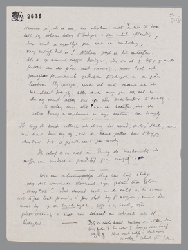 Wanneer je, als ik nu, absoluut niets ánders te doen hebt dan schoone letteren te bedrijven en geen enkele afleiding, dan voel je eigenlijk pas wat een zonderling, vaag bedrijf dat is! Althans gelijk ik dat uitoefen. Als ik op normale leeftijd doodga, dan ben ik ± 65 j. op aarde om een páár niet onaardige, maar toch ook geenszins fenomenale gedichten te schrijven en een páár leesbare blz. proza, welke ook niets nieuws aan de menschheid brengen. Alles samen nog geen tien vel en dan nog maar alleen om een páár Nederlanders te bereiken.