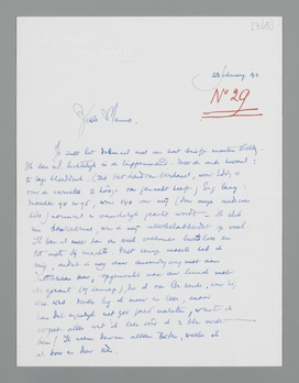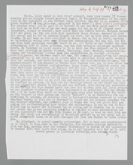 Nu allerbest, ik schrijf spoedig uitvoeriger. Dit is maar een spoedantwoord op je brief. Ik hoop, dank zij mijn doktertje, een bijzonder aardige paddevette zoon van Sem, spoedig weer een normaal bloeddrukje te hebben en wat opgewekter te worden! Héél véél liefs voor allen, en in het bijzonder voor Ant en je zelf,