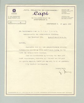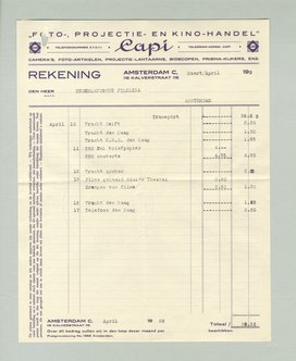 Ingesloten doen wij U een gespecificeerde rekening toekomen van het tot op heden openstaande bedrag ten behoeve der Nederlandsche Filmliga