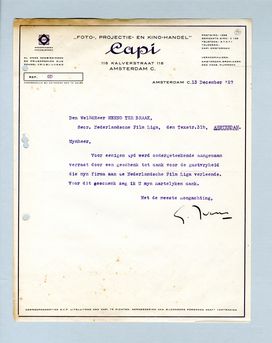 Van Mejuffrouw J. de Vries, Nassaukade 52, lid der Film Liga, kregen wij opgave dat deze de convocatie-kaarten voor de Film Liga niet regelmatig ontving. Mogelijk dat U dit even na wilt zien.