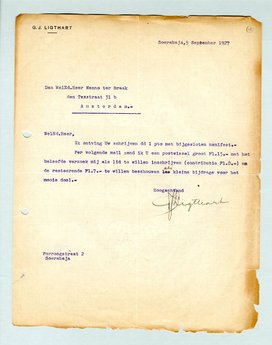 Per volgende mail zend ik U een postwissel groot Fl.15.- met het beleefde verzoek mij als lid te willen inschrijven (contributie Fl.8.-) en de resteerende Fl.7.- te willen beschouwen als kleine bijdrage voor het mooie doel.