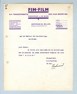 Wij deelen door deze mede, dat wij accoord gaan met Uw schrijven van heden betreffende filmhuur van onze film Moskou.