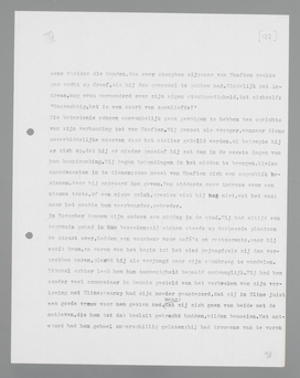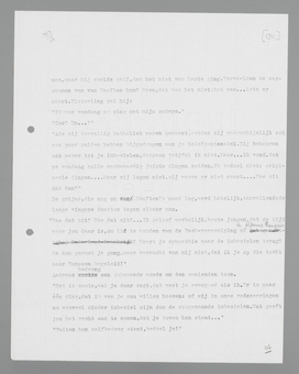 ‘Ben ik tòch, ondanks alle goede voornemens, weer bezig mijzelf te bedriegen, aansluiting te zoeken bij die imbecielen, die ik evengoed haat als hij? Had hij toch gelijk, tòch, toen hij sprak van een sentimenteele bui?.... Maar morgen is het Zaterdag, morgen is hij uit de stad, morgen heb ik het atelier, morgen heb ik Maffie.... Stop!’