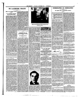 ‘De Lachende Vrouw’ is, wat de behandelde stof betreft, niet bepaald een tooneelstuk met fonkelnieuwe en verbijsterend actueele problemen. De Franschman René Latour, beeldend kunstenaar (om het maar zoo algemeen mogelijk te zeggen, want hij krabbelt en beeldhouwt in het eerste bedrijf met hetzelfde élan) ontmoet een al wat oudere vrouw, de Zweedsche Ingrid Rydman. Uit die ontmoeting ontwikkelt zich een samenleven op voet van broeder-zusterlijkheid; maar Ingrid, die litterair-philosofische talenten heeft en rondloopt met de gedachte aan een boek, dat zij wil schrijven, voelt hoe haar auteurschap steeds meer verdrongen wordt door de zorg voor de overhemden en sokken van haar beeldhouwer; en zij denkt, onder den invloed van een steeds sterker wordende (overigens ongemotiveerde) jaloezie jegens een Engelsch meisje, Hazel Graham, die door René wordt gemodelleerd, dat zij weg moet gaan om in de eenzaamheid haar boek te kunnen voltooien. Deze ‘Verwirrung der Gefühle’ komt in die eenzaamheid echter tot klaarheid; Ingrid komt terug, nu met de wetenschap, dat zij voortaan voor René en zijn werk en niet voor haar eigen talent zal leven. Er schijnt een periode van geluk aan te breken; René maakt naam, zijn werk wordt verkocht; en midden in zijn atelier staat het beeld van ‘de lachende vrouw’, Ingrid. Dan breekt de oorlog uit; en René, hoe afkeerig ook van de ‘bourgeoisie’ van zijn land, voelt het patriotisme in zich ontwaken; ondanks het verzet van de kosmopolitische Ingrid gaat hij in dienst, en sneuvelt. Ingrid blijft alleen, met haar beeld, de ‘lachende vrouw’. De auteur heeft het episodische van deze historie aangegeven (men vergelijke voor dezen vorm het stuk ‘De Eerste de Beste’ van Monckton Hoffe, dat de Amsterdamsche Tooneelvereeniging verleden seizoen speelde) door haar tusschen een proloog en een epiloog in te plaatsen; aan het begin en aan het eind van het stuk ziet men Ingrid in rouwgewaad zitten in het museum, dat de ‘lachende vrouw’ heeft aangekocht; idiote toeristen en verliefde paartjes gaan er babbelend langs, het leven gaat weer zijn gewonen gang....