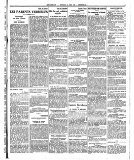 De Nederlandsche titel van het (overigens uitstekend door Jeanne van Schaik-Willing vertaalde) stuk van Jean Cocteau: ‘Vreeselijke Ouders’ zal waarschijnlijk een noodtitel zijn, want ‘Les Parents Terribles’ is vrijwel onvertaalbaar, en ‘vreeselijk’ zegt hier niets over den inhoud. Misschien zou ‘Onmogelijke Ouders’ nog beter uitdrukken, wat de schrijver met deze woordspeling bedoelde, maar ook dat is niet zoo precies de weergave van het begrip. Handhaven wij dus maar liever den Franschen titel van dit ongetwijfeld zeer curieuze en boeiende stuk van een der talentvolste schrijvers van het moderne Frankrijk; door de onvertaalbaarheid van den titel te erkennen erkent men in zekeren zin ook de ‘onvertaalbaarheid’ van Cocteau's talent.