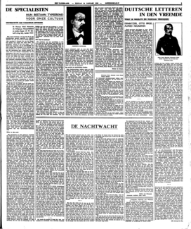 Deze beschouwingen hebben niets en alles te maken met het boek van dr Herman Wolf, dat ik als voorwendsel onder den titel schreef. Het is mij n.l. niet mogelijk op het boek van dr Herman Wolf zelf in te gaan, aangezien hij zich zoozeer met zijn specialistendom heeft vereenzelvigd, dat er voor eenig menschelijk, persoonlijk accent nauwelijks ruimte over is gebleven. In een slordig vaktaaltje schrijft dr Wolf over Nietzsche, het humanisme, Just Havelaar, Leopold Ziegler, mr C.P. van Rossem, Stefan Zweig, moderne Duitsche litteratuur, Thomas Mann, Hermann Hesse en Frans Werfel; ik noem de onderwerpen zoo uitvoerig op om te laten zien, dat ik er niet nader op in kan gaan. Welk gegeven de schrijver ook aangrijpt, het wordt nietszeggend en banaal onder zijn specialistenhanden; zooals trouwens uit den titel al wel kon blijken. De menschen, die Nietzsche tot een religieuze persoonlijkheid willen bombardeeren, maken zich n.l. schuldig aan datgene, waartegen Nietzsche zijn geheele leven heeft gestreden: een vervalsching van waarden; als Nietzsche religieus was, dan was Marx het ook, en Trotski niet minder, om van Moleschott en andere door en door religieuze stofvereerders nog maar te zwijgen; dan is ieder mensch, die denkt en voelt, religieus en kan men ergo het begrip gerust afschaffen. Maar de onuitgesproken intentie van dr Wolf is van Nietzsche een soort grootscheepschen Just Havelaar te maken (getuige wat hij over de philosophie van Havelaar, in precies hetzelfde specialistenjargon overigens, elders in zijn boek heeft te vertellen); en om dit fundamenteele misverstand moet men dezen bundel studies verwerpen. Iemand, die in ernst kan schrijven, dat Nietschze ‘de meest verscheurde denker der negentiende eeuw’ was (alsof de negentiende eeuw een sterrit om den verscheurdheidsbeker was geweest!), die er verder nog niet eens in slaagt hem behoorlijk voor een schare na te vertellen en telkens in de wanhopigste valsche beeldspraak vervalt, moet werkelijk eens gemoedelijk worden herinnerd aan de weinig vleiende dingen, die Nietzsche over de philosophen heeft gezegd. Of wil dr Wolf door het laten drukken en uitgeven van zijn werk de juistheid van Nietschzes verachting bewijzen? Dan is hij daarin voortreffelijk geslaagd en men zou zijn studie gratis ter beschikking moeten stellen als afschrikwekkend voorbeeld van steriel specialistengedoe. De gemeenplaatsen zijn hier zoo overtalrijk gezaaid, dat men er oprecht aan twijfelt, of dr Wolf wel eens anders dan in de schema's van anderen heeft gedacht, of hij, de specialist in de philosophie, zich wel ooit rekenschap heeft gegeven van de woorden, waarvan hij zoo critiekloos gebruik maakt. Zelfs als navertelier van andermans wijsheid is hij derderangs; bijzonder pikant is wel, dat dr Wolf in zijn opstel over Havelaar navertellend afgeeft op de ‘academische philosophen’… waar hij zelf alleen maar niet toe gerekend kan worden, omdat hij niet eens een goed philosoof is; men zou hem moeten klasseeren onder de ‘academische navertellers’, d.w.z. als een van de afschrikwekkendste voorbeelden van de verwoestingen, die het specialisme in een gezond menschenlichaam kan aanrichten.