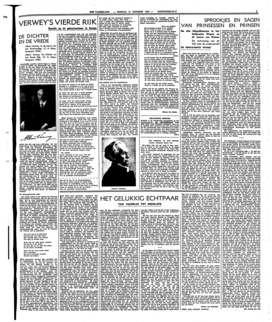Wonderlijke sensatie: enkele dagen na elkaar te lezen de poëzie van Slauerhoff, den ‘poète maudit’, en die van Albert Verwey, den vitalen Tachtiger, die zoo niets over zich heeft, dat men met het woord ‘maudit’ in verband zou kunnen brengen! Men kan zich bezwaarlijk een grooter contrast denken dan dat tusschen deze twee, ieder voor zich belangrijke en merkwaardige, dichters; in deze verhouding vervangt Slauerhoff dan in zekeren zin Kloos, die tientallen jaren geleden in felle oppositie stond tegen Verweys denkend dichterschap. De symboliek laat zich nog even volhouden; bij het dichterschap van Slauerhoff past deze vroege dood, zooals bij Verweys dichterschap dit lange, aan uiterlijke afwisseling betrekkelijk zoo arme leven past (‘Na de bliksem van een jeugd die me alleen als mythe heugt’, volgens Verweys eigen woorden). Het zijn twee soorten ‘dichterlijke waardigheid’, beide op zichzelf compleet.... en tevens volkomen onvereenigbaar, zelfs niet onder het vaandel der poëzie, dat zooveel tegenstellingen pleegt te vereenigen. Het is mogelijk, dat het heengaan van Slauerhoff dezen eeuwigen zwerver een periode van verval bespaard heeft, dat dit sterven hem behoudt voor onze herinnering als een boeiende persoonlijkheid, die niet de ellende heeft behoeven te ondergaan van het ‘aftakelen’; er waren eenige aanwijzingen in Slauerhoffs laatste werk, die er op wezen, dat zijn verbittering hem te machtig werd, en daardoor oversloeg naar valsche, melodramatische effecten; het waren nog teekenen, meer niet, en het heeft nu geen zin er over te philosopheeren, of Slauerhoff zich zou hebben kunnen vernieuwen. In ieder geval blijft ons nu zijn oeuvre bewaard als een groot, veelzijdig geheel, veelzijdig ondanks de monomane bezetenheid door de ééne piraat- en desperado-obsessie.