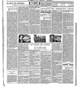 HIER EN DAAR zet zich de legende vast, als zou het verlangen naar literatuur ‘van bloed en bodem’ een speciaal verlangen zijn van nationaal-socialistische of fascistische personen (zooals bv. de jonge en flinke mannen, die zich in het tijdschrift De Bundel trachten uit te drukken). Die legende is even ongemotiveerd als de andere legenden, die in deze kringen een magischen invloed schijnen uit te oefenen; want er was al lang een literatuur ‘van bloed en bodem’, eer zij tot reclameartikel van een politieke groep werd verheven en de twijfelachtige eer genoot tegen andere vormen van litteraire expressie te worden uitgespeeld. Men behoeft, om bij Nederland te blijven, maar één voorbeeld te noemen: Antoon Coolen. Deze auteur publiceerde zijn Peel-romans lang voor opkomst en val van den heer Mussert; en uit andere uitlatingen zijnerzijds blijkt duidelijk genoeg, dat hij ook in het geheel geen lust heeft door de ‘bloebodemers’ te worden opgeslokt. Het gaat er nu niet om, of men die romans van Antoon Coolen bizonder mooi of bijzonder leelijk vindt; een feit is, dat zij bestonden, en het zuiverste voorbeeld gaven van een op het landschap en op de ‘volksziel’ geïnspireerde letterkunde. Ik voor mij stel de latere boeken van Coolen (Dorp aan de Rivier en De Drie Gebroeders) veel hooger dan de Brabantsche, in dialect geschreven werken van zijn hand; maar omdat deze eventueel nog de verdenking zouden kunnen wekken onder suggestie van het nationaalsocialistisch streven te zijn geconcipieerd, noem ik met opzet de vroegere geschriften. Wat dus wèl origineel is aan het ‘bloed-en-bodem’-programma is de speciale reclame, de veralgemeening van een genre tot de eenig-zuivere en in een ‘gezonde’ samenleving derhalve eenig-mogelijke literatuur, die gepaard gaat met het lafhartige geschrijf tegen de Joden en emigranten, alsof deze menschen parasieten en bacillenverspreiders zouden zijn. Men zou zich zelf, liefst door een verbiedende staatsautoriteit, een vrijbrief willen verschaffen om veel slechter te schrijven dan Antoon Coolen ooit gedaan heeft, zonder daarbij door een lastige, ‘ontaarde’, in het asphalt gewortelde, ‘kultuurbolsjewistische’ critiek te worden gehinderd; want zulk een ‘vrijheid’ bestaat inderdaad in den dictatuurstaat, die de qualiteit uitsluitend bepaalt volgens het criterium der politieke gezindheid (in Rusland zoo goed als in Duitschland en Italië). Vrijheid wil hier zeggen: ongelimiteerde kansen voor de literatuur, desnoods de ergste rhetoriek, die de heerschende camarilla naar de oogen ziet, onderdrukking van alle uitingen, die de zelfstandige bewustwording der menschen, desnoods tegen de staatsraison in, zou kunnen bevorderen. Zulk een vrijheidsbegrip wordt in allen ernst door de totalitairen verdedigd als een waardevol iets tegenover de volgens hen in staat van ontbinding verkeerende democratische vrijheid. Om nu bij het voorbeeld te blijven: de democratie heeft zich nooit verzet tegen de Peel-romans van Antoon Coolen; en terwijl dat voor ons geenszins een reden is om de democratische vrijheid te idealiseeren, idealiseeren de ‘bloebodemers’ bij voorbaat al een vrijheidsconceptie, die, waar zij in de practijk werd toegepast, nog niets anders heeft voortgebracht dan een atmosfeer van de ergste geestelijke corruptie en intrige (over de begeleidende politiemaatregelen wil ik in dit verband liever discreet zwijgen).