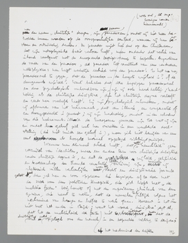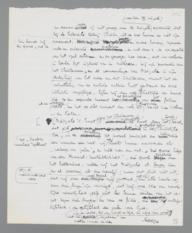 Is deze erkenning het beroemde ‘historische besef’, dat bij mij ontwaakt en mij rijp maakt voor een huldebetuiging aan de ‘twintig eeuwen Christendom’? Is dit een bewijs van groeiend respect voor de geschiedenis, zooals dat bij Thomas Mann en Huizinga voorkomt, die er bij voorbaat van overtuigd zijn, dat verzet tegen de traditie een misdadige aanslag is op een ontzaglijk cultuurbezit? Maar wie sprak daar van bezit? Er is geen cultuurbezit, noch van de antieken noch van het Christendom, er is slechts een boedelbeschrijving van wat eens bezit wàs, en er is het gevoel van afhankelijkheid van een vormschool, er is het bewustzijn, dat wij niet zouden zijn, wie wij zijn, als niet de discipline door deze vooroordeelen (tegenover andere vooroordeelen) in ons bestaan was overgegaan, lang voor wij geboren werden. Daarom voel ik een paradoxale verwant-