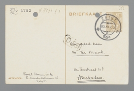 Per gelijke post zend ik aan de redactie van P.C. het gevraagde recensie-exemplaar. Natuurlijk stel ik het zeer op prijs een exemplaar ter bespreking te ontvangen. Het speet mij zeer, dat het mij niet mogelijk was u Dinsdag te treffen, maar ook mij riepen en roepen de plichten der Alma mater, ver van de muze en haar vrienden. Hopen wij op een volgend maal. Marsman zal u wel eenigszins hebben uiteengezet, hoe wij - in verband met de plaatsruimte - de bespreking over de Man het liefst zagen opgevat. Mocht u eens deze buurt uitkomen dan reken ik op uw bezoek, maar schrijft u even vooruit, het zou mij spijten als u voor niets kwaamt en dat zou anders nog wel eens kunnen gebeuren.