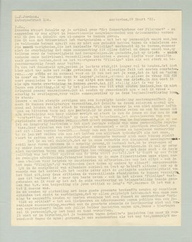 Immers - welke absurde gevolgen zou een dergelijke handeling meebrengen! Noch jij, noch ik kunnen redelijkerwijs verwachten, dat Scholte na deze scherpen aanval zijn mond zal houden en het staat te vreezen, dat zijn verweer in een niet minder heftigen en bitteren toon zal zijn gesteld. Er is geen enkele reden om aan te nemen dat zijn overtuiging een haar minder eerlijk en sterk is dan de jouwe en dus zou de voortzetting van Filmliga op deze wijze beteekenen, het organiseeren van een periodieke en chronische rel... tot groot genoegen van de buitenwacht, die wij zoo fel en langdurig bestreden - tot niet geringe schade van onze persoonlijke reputaties. Maar afgezien van het pitoyabele schouwspel - welk practisch resultaat zou met dit alles worden bereik... tenzij dan een heillooze en hopelooze verwarring bij de lezers? Welken zin zou het hebben een militant tijdschrift als het onze, voort te zetten met een redactie, wier scherpste verweer zich naar binnen richt?