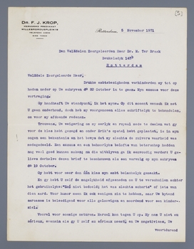 Drukke ambtsbezigheden verhinderen my tot op heden nader op Uw schryven do 20 October in te gaan. Mijn excuus voor deze vertraging.
