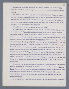 Uw ‘grap’ over het gewraakte opstel staat niet alleen. Zy ligt geheel in de lyn van Uw ‘Afscheid van Domineesland’. Ik heb de moeite genomen dat dwaze boek te lezen, om beter te kunnen beoordeelen wat my omtrent Uw lessen ter oore kwam. Neen, ik ben het niet eens met het rechtzinnige blad dat in U slechts den criticus van het vryzinnig Christendom zag en U zelfs eenigszins byviel (zie pp. 7, 199 vv.). Dat gy den kring waarin gy zyt opgevoed belachelyk maakt, getuigt slechts van gebrek aan piëteit; maar gy bestrydt in het modernisme wat ons, rechtzinnigen, toch altijd nog met de linkerzijde vereenigt: n.l. ons gemeenschappelyk idealisme. En een ‘mop’ als gij op pag. 8 durft ‘tappen’ (Jezus Je zus(ter)) gaat alle perken van fatsoen te buiten. Een letterkundige van beteekenis zeide dezer dagen tot my: ‘Die geestigheid permitteerden de straatjongens zich al veertig jaar geleden in de achterbuurten van Amsterdam; Ter Braak is dus niet eens oorspronkelyk’.