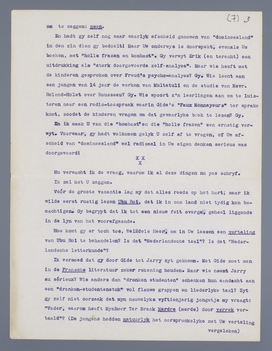 En had gy zelf nog maar waarlyk afscheid genomen van ‘domineesland’ in den zin die gy bedoelt! Maar Uw onderwys is doorspekt, evenals Uw boeken, met ‘holle frazen en bombast’. Gij verwyt Erik (en terecht) een uitdrukking als ‘sterk doorgevoerde zelf-analyse’. Maar wie heeft met de kinderen gesproken over Freud's psycho-analyse? Gy. Wie leent aan een jongen van 14 jaar de werken van Multatuli en de studie van Mevr. Roland-Holst over Rousseau? Gy. Wie spoort z'n leerlingen aan om te luisteren naar een radio-toespraak waarin Gide's ‘Faux Monnayeurs’ ter sprake komt, zoodat de kinderen vragen om dat gevaarlijke boek te lezen? Gy.