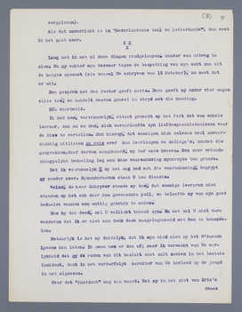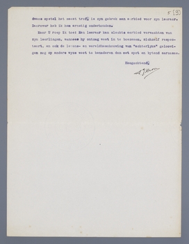 Trouwens, Uw weigering om my eerlijk en royaal mede te deelen wat gy voor de klas hebt gezegd en onder Erik's opstel hebt geplaatst, is in mijn oogen een bekentenis en het bewys dat mij slechts zuivere waarheid was medegedeeld. Een excuus en een behoorlyke belofte van beterschap hadden nog veel goed kunnen maken; nu die uitblyven ga ik eenvoudig verder: U gelieve derhalve dezen brief te beschouwen als een gevolg op mijn schrijven do 19 October.
