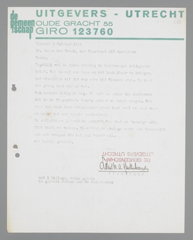 Tegelijk met de jouwe ontving ik hedenmorgen inliggende brief. Het is wel een toer om dat boek klaar te krijgen, he? Misschien wil jij nog eens bij Clausen zien. Ik hoor dan graag snel hoe of wat.