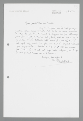 Aan Uw verzoek zou ik met genoegen voldaan hebben, ware het niet, dat ik in een boek, waaraan ik bezig ben de de laatste hand te leggen, een zoo uitvoerige ‘ontmoeting’ met Nietzsche heb gehad, dat er voor den afzonderlijke studie letterlijk niets overblijft (voor mij dan). Het spijt mij, want Uw plan was mij in beginsel natuurlijk zeer sympathiek. Moch U bij gelegenheid een ander idee hebben in verband met deze reeks uitgaven, dan hoop ik dienomtrent nader van U te hooren.
