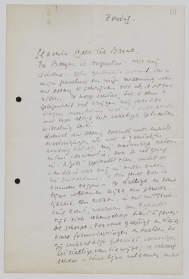 Wellicht verbaast het u na dit alles, dat ik uw essay toch in ‘De Gids’ hoop te zien. Ik vind echter, dat uw persoonlijkheid er zich op een hoezeer door het polemische ook beperkte, toch zoo klare wijze in uitspreekt, dat een geestelijke ontmoeting inderdaad, lezende, plaats grijpt. Bovendien geef ik graag toe, dat de zoo dilwijls polemische toon, door haar groote bekwaamheid, ook haar voordeel heeft - dát n.m. van te prikkelen tot verweer tegen díe dogmatiek- à rebours, waarvan de humor mij u nu eenmaal als een voorvechter doet zien.