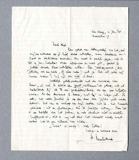 Hartelijk gelukgewenscht met de successen van Kees, in wie ik altijd een groot vertrouwen heb gehad, ook al saboteerde hij als B de geschiedenislessen op een zoo hoffelijke manier. Ik ben benieuwd te hooren, wat hij nu [krijgen] zal. En ook, met welke [functies] je op den duur door Zijlstra zult worden belast. Dat van de verkoop van mijn boeken wist ik, met tragische zekerheid: uit de afrekeningen, die ik jaarlijks ontvang. Maar het is zoo besteld door het fatum, en absoluut niet onredelijk. Hoofdzaak is, dat er nog wel eens iets verkocht wordt, want anders kan ik geen uitgever meer vinden.