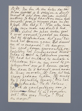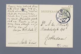Nu ben ik den helen dag van plan geweest je te schrijven en steeds moest ik iets doen dat geen uitstel verdroeg. Je krijgt daardoor mijn beste wenschen voor het nieuwe jaar een dag te laat. Hoe heb je 't? Hier alles tamelijk: mijn man nog steeds te bed. Maar sedert een paar weken gaat 't wat vooruit, zoodat we hopen dat hij in afzienbaren tijd aan zijn werk zal kunnen gaan. Het duurt nu al 10 maanden! De kinderen zijn goed, komen gewoonlijk van zaterdag tot Zondagavond thuis. Johan is niet in Rotterdam geweest. Hij had het verkeerd, ze moesten in Schiedam zijn en nu vond hij geen gelegenheid om je te komen opzoeken, daar ze 's avonds weer naar U. terug moesten. Hij zou het zeker graag gedaan hebben. Hij werkt op 't oogenblik. Genoeg? Wie zal dat uitmaken? In de balans zag ik de aankondiging van je roman. Komt hij in 't voorjaar uit? Hoe was Berlijn? Wat een vragen?