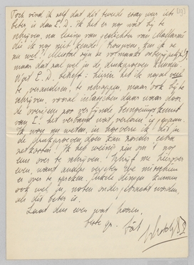 Toch vind ik zelf dat dit tweede essay weer iets beter is dan E.D. Ik heb er nog wat bij te schrijven, na lezing van gedichten van Mallarmé die ik nog niet kende (trouwens, ken ik ze nu wel? Meestal zijn ze volmaakt onbegrijpelijk!), maar dat zal wel in de drukproeven kunnen. Wat E.D. betreft: hierin heb ik nogal veel te veranderen, te schrappen, maar ook bij te schrijven, vooral inlasschen daar waar door de overigens zoo verfijnde besnoeiingskunst van E. het verband wat verloren is gegaan. Ik wou nu weten, in hoeverre ik dit in de drukproeven doen kan zonder extra zetkosten! Ik heb weinig zin om 't nog eens over te schrijven. Schrijf me hierover even, want anders vergeten we misschien er over te spreken. Enkele dingen kunnen ook wel in noten ondergebracht worden, als dit beter is.