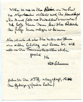 ich nehme an, daß Sie wieder wohlbehalten in der residenz Ihres Vaterlandes angelangt sind und hoffe, das vegetarische Essen hier habe weiter keine unangenehmen Folgen auf Ihr irdisches Wohlbefinden gehabt.