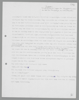 niet bij het hoofd was aangepast. Lichtblauwe ogen, bijna naakte ogen; griezelig blonde oogharen. Pak uit de goedkoopste confectiewinkel. Ring met glazen steen aan de middenvinger. Geribde wollen sokken in hoge bruine schoenen, met lipjes achteruit. ... Wat een mislukte rhinoceros, dacht Dumay vol afkeer; daar wordt ik de enige keer, dat ik derde klasse reis, op zulk gezelschap getracteerd. Slapen is het enige, dan zie ik ten minste niets. ...