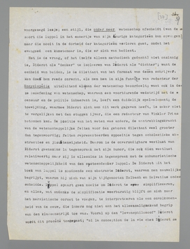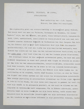 Dat vooropgesteld, ben ik er na lezing van het interessante boek van Luppol meer dan ooit van overtuigd, dat Diderot alle superieure schoolmeesters van het soort Luppol, marxist of niet marxist, over de geheele linie slaat, ook tegenwoordig, door zijn zeldzaam elastische intelligentie, zijn gebrek aan eerbied voor welke autoriteit ook, zijn enorme menschenkennis, kortom door datgene wat ik zijn dilettantisme noemde.