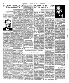 Zoo zou, om een enkel voorbeeld te noemen, de heer Tielrooy nooit een behoorlijke gemiddelde karakteristiek hebben kunnen geven zoowel van Dirk Coster als van E. du Perron, wanneer hij met zijn heele geestelijke hebben en houden betrokkn ware geweest bij de botsing tusschen deze twee uitersten van Nederlandsch schrijverschap. Ongetwijfeld staat de h[e]er Tielrooy met zijn sympathie aan den kant van den redacteur van De Stem en hij verzuimt dus niet Du Perron tweemaal te kapittelen over ‘son vilain livre contre Coster’; ongetwijfeld is zijn karakteristiek van Coster een poging om te beschermen en zijn karakteristiek van Du Perron een poging om te bestraffen; maar dat doet niets af aan het feit, dat het resultaat van beide karakteristieken is een gemiddelde, waaruit de lezer, die zich op de hoogte wil stellen, behoorlijk kan opmaken, welke rol deze twee personen ongeveer gespeeld hebben en spelen. Bekeken van het standpunt der voorlichting is dat een voordeel; en, voeg ik er direct aan toe, wie eenmaal voorgelicht is en zelf zijn weg verder zoekt door lectuur van ‘le vilain livre’ of andere werken, zal voortaan zelf zijn meening vormen en Tielrooy slechts erkentelijk blijven voor de introductie. Dat is nu eenmaal het lot der voorlichters; zij worden na verloop van tijd afgedankt, wanneer hun lezers wegwijs zijn geworden, en zij moeten dat zelfs prettig vinden......, krachtens hun eigen doelstelling.