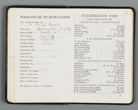 Persoonlijk memorandum en Feestdagen 1938