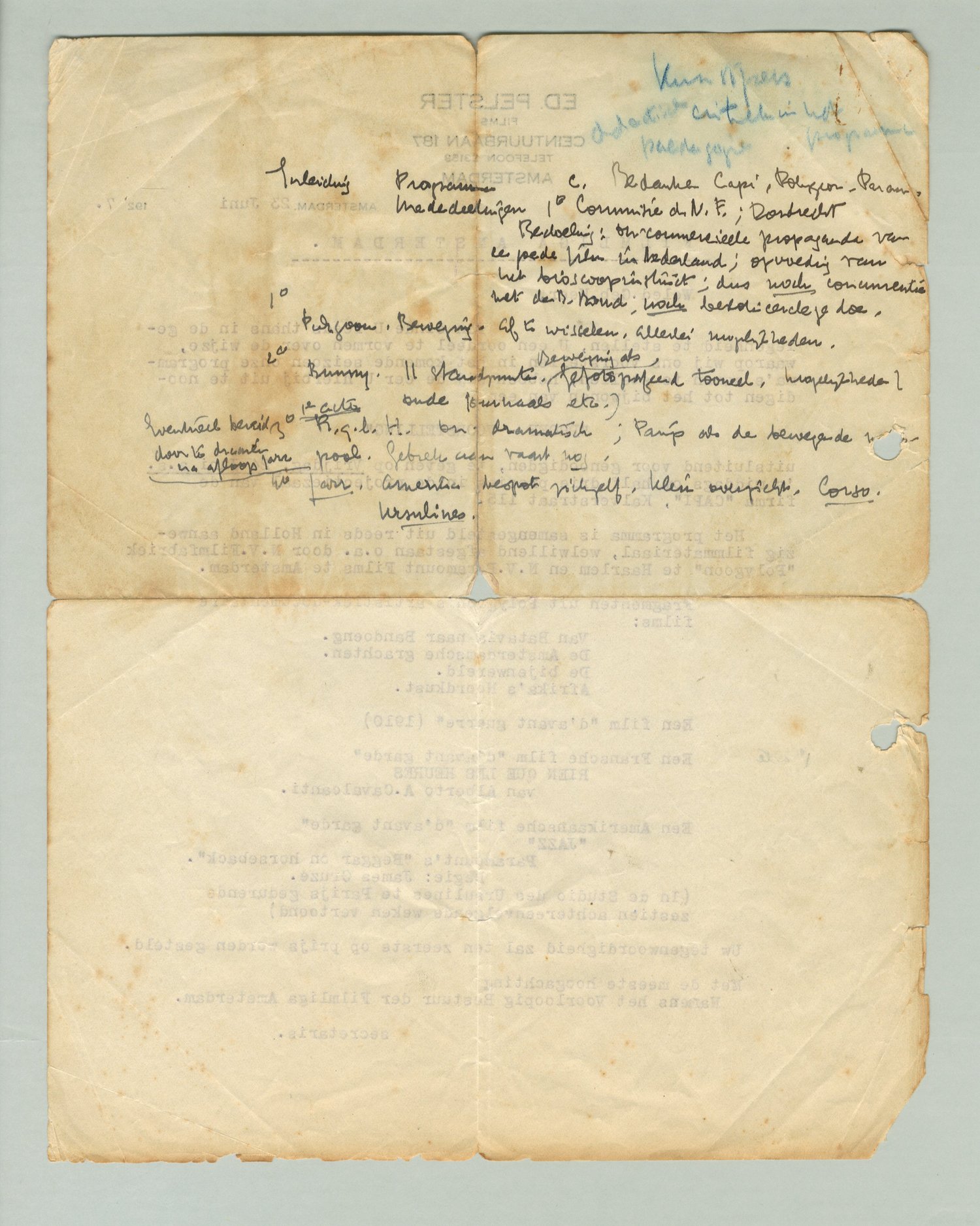 Filmliga, aantekeningen en typoscripten
